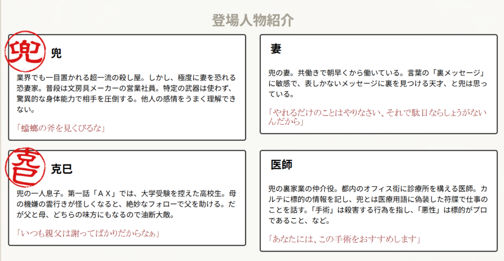 まず連作短編集であることや、この短編すべて一人の殺し屋の話である。